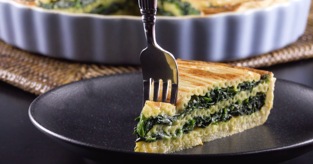 Unter „makkaronischer Dichtung“ versteht man Verse, die zwei Sprachen humorvoll ungelenk miteinander mischen: „Auf Nudeln hab ich grande appetito, drum schaue ich nel forno.“ Will heißen: Auf Nudeln hab ich großen Appetit, drum schaue ich in den Ofen. Denn dort entsteht heute ein ganz besonderes Nudelgericht: Makkaroni-Spinat-Torte.