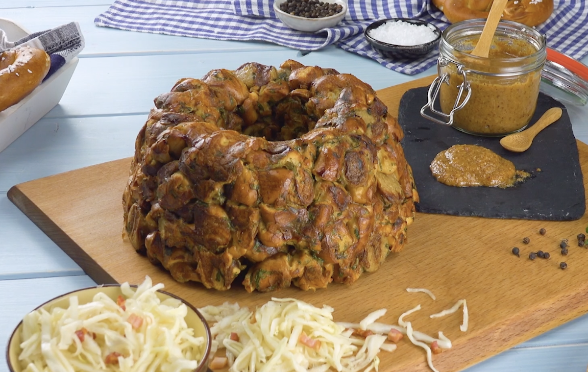 Ein weiteres Beispiel dafür, dass Kuchen nicht nur süß gut schmecken. Dass sie auch herzhaft eine absolute Wucht sind, zeigt unser Gugelhupf aus knusprigen Brezeln und aromatischen Würstchen. Hier findest du das Rezept für den herzhaften Gugelhupf mit Brezeln.