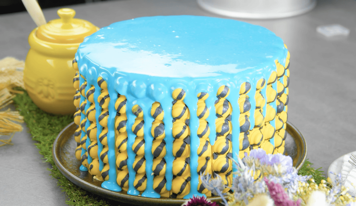 1. Bunter Zebra-Kuchen mit blauer Glasur