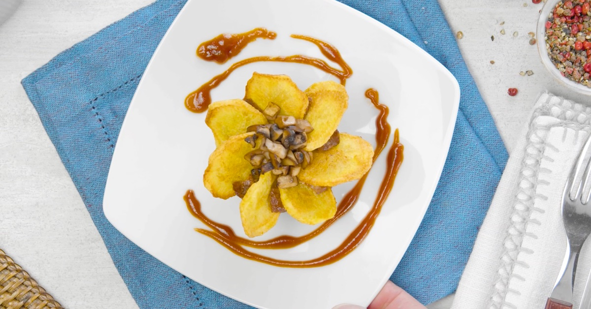 2.4. Gib zum Schluss die restlichen Pilze obendrauf und gare die Sonnenblume für 30 Minuten bei 175 °C Umluft.