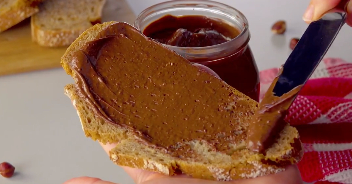 Röste die Haselnüsse bei 180 °C 20 Minuten im Ofen. Packe sie in ein Küchentuch und knete sie damit so lange durch, bis die Schale sich löst. Gib dann die geschälten Haselnüsse in einen Mixer und hacke sie darin klein. Schütte die Sahne, den Puderzucker, den Kakao und die Vollmilchschokolade hinzu und püriere alles noch einmal fein.