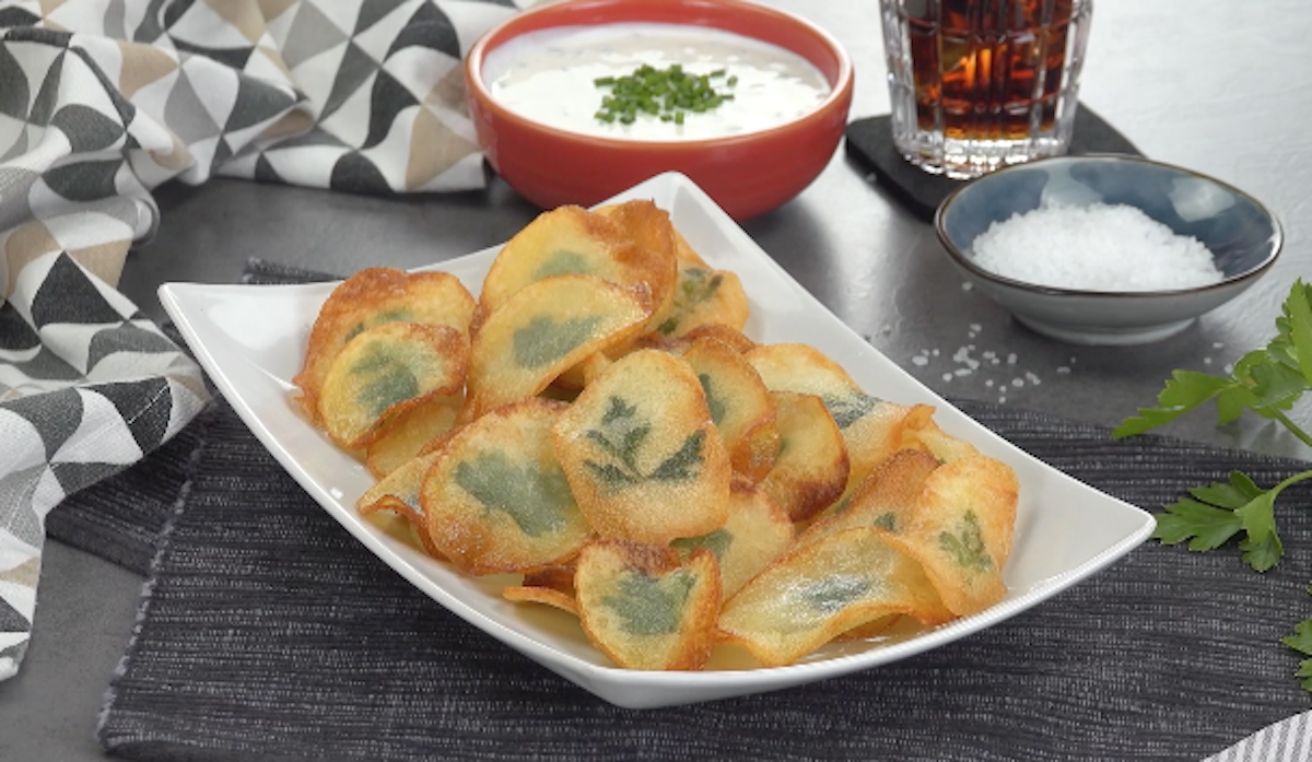 Ob gekocht, gebraten, als Suppe, Gratin oder Salat – des Deutschen liebstes Gemüse ist und bleibt die Kartoffel! Für ihre Vielseitigkeit muss man diese Knolle einfach lieben. Wer Kartoffeln mag, mag mit größter Wahrscheinlichkeit auch Kartoffelchips. Und Kartoffelchips muss man nicht unbedingt kaufen – man kann sie nämlich auch super selber machen. In unserem Fall verpassen wir den Chips noch ein grünes Innenleben. Außerdem zeigen wir dir im Folgenden noch zwei weitere kreative Kartoffelrezepte, die bei Gästen oder Familienmitgliedern für ordentlich Begeisterung sorgen.
