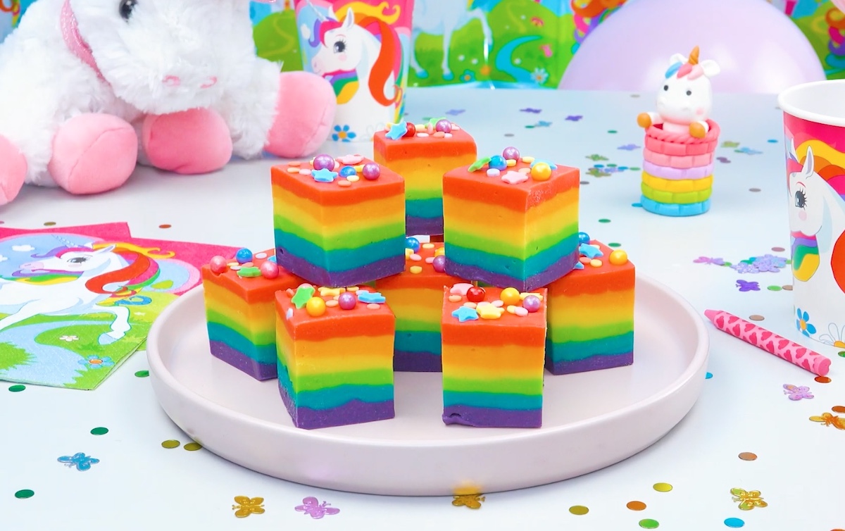 Biskuitrolle, Fudge oder Eis – mit diesen 3 farbenfrohen Naschereien kannst du einen Regenbogen von nun an ganz wetterunabhängig genießen, und das nicht nur mit den Augen!