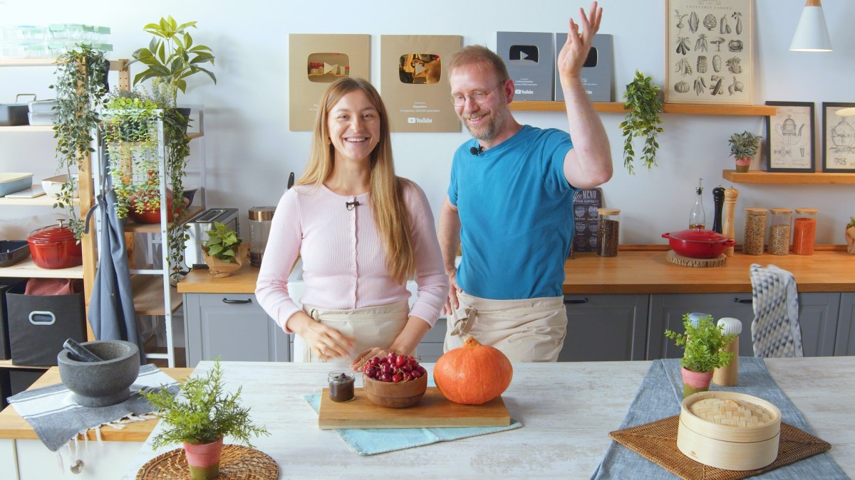Manchmal schafft man es nach der Arbeit nicht mehr, einkaufen zu gehen. Dann muss man sein Abendessen mit dem kochen, was Kühlschrank und Vorratsschrank hergeben. Dabei entstehen oft ungewöhnliche Kombinationen, die trotzdem lecker sind. Ähnlich erging es unseren beiden Köchen Adrianna und Oli, die zu einer 3-Zutaten-Challenge angetreten sind. Sie bereiteten jeweils ein Gericht mit Kürbis, Kirschen und Misopaste zu. Entstanden sind Kürbisrösti auf einem Kirschbett mit Misosoße sowie Kürbiswaffeln mit Kürbispüree und Balsamico-Kirschen.