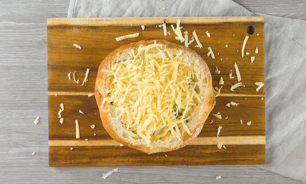 1.1 Schneide den Deckel vom Weißbrot ab und höhle es aus.