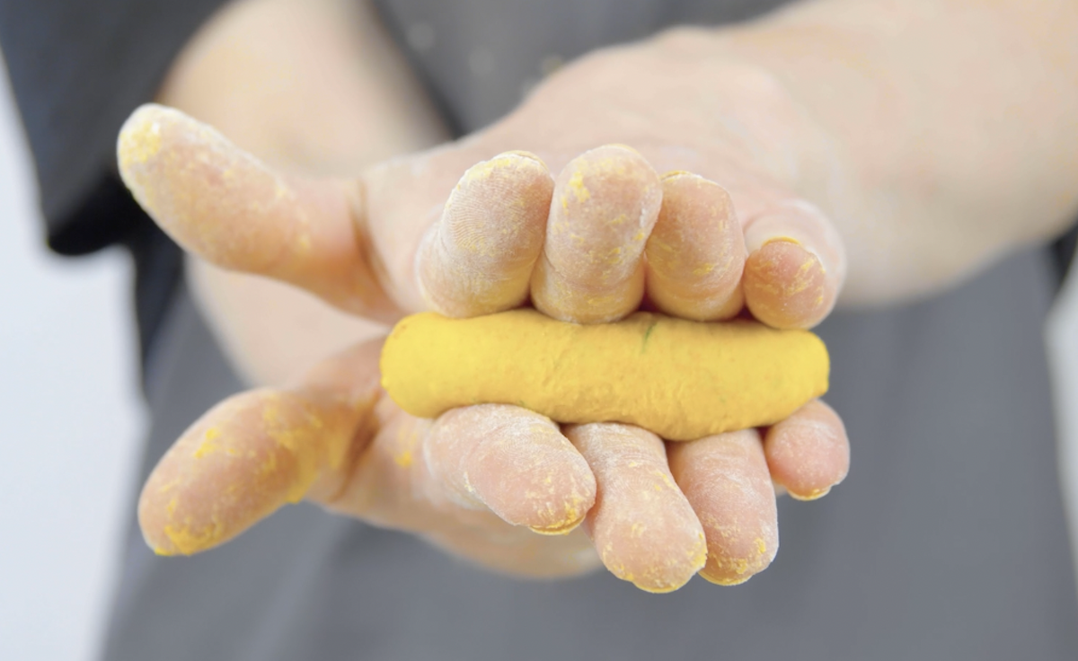 1.3 Rolle den Teig zu einer Rolle zusammen und lass diese abgedeckt 15 Minuten im Kühlschrank gehen.