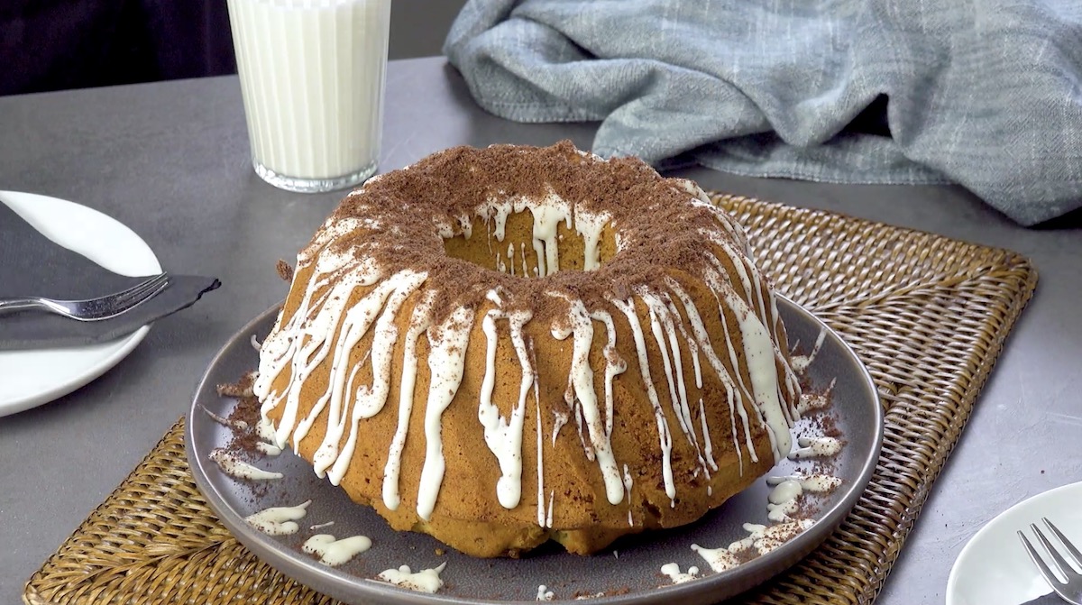 So geht es: Zerkrümele den Kuchen. Gib ihn dann zusammen mit Milch und Vanilleeis in einen Mixer. Dekoriere den Milchshake vor dem Servieren mit Kuchenkrümeln.