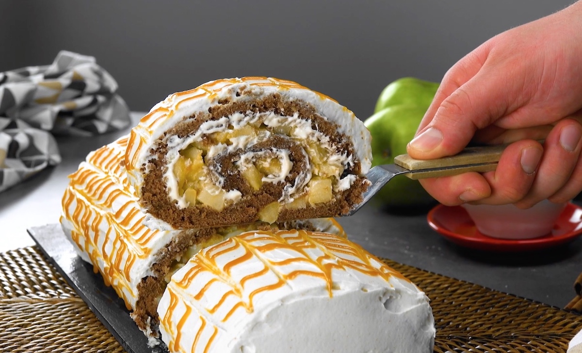 5. Biskuitrolle mit karamellisierten Äpfeln und Sahnecreme