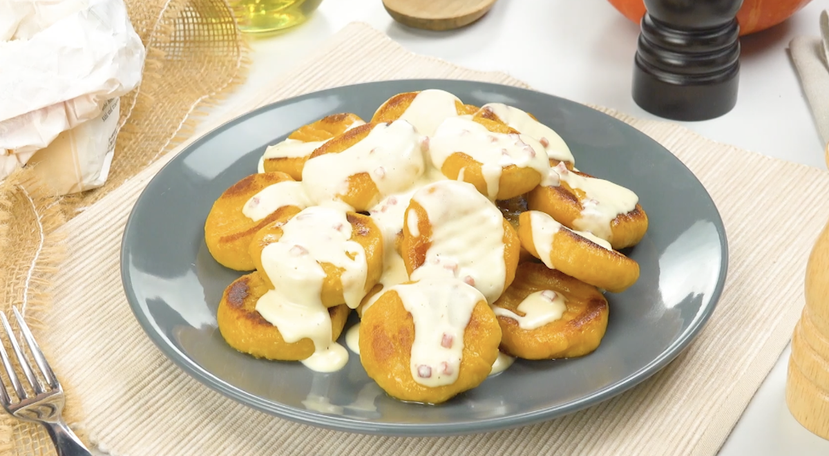 4. Angebratene Gnocchi aus Kürbis und Kartoffeln mit cremiger Soße