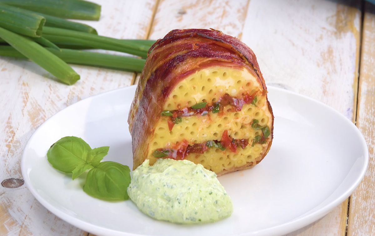 Dieses Rezept sollte den Preis für den überraschendsten Gugelhupf des Jahres gewinnen. Nach dem Anschneiden des knusprigen Schinkenrings erlebt man ein dekoratives Pasta-Tomatenwunder, das auch noch vorzüglich schmeckt. Hier findest du das Rezept für die Makkaronitorte.