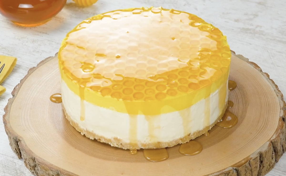 Dieser Käsekuchen überzeugt zunächst vor allem durch seinen besonderen Look. Optisch einer Bienenwabe nachempfunden, trumpft er allerdings auch geschmacklich mit einer feinen Honignote auf. Um diesen coolen Look so hinzubekommen, hilft dir übrigens ein Stück Knallfolie. Hier findest du das Rezept für den Käsekuchen.