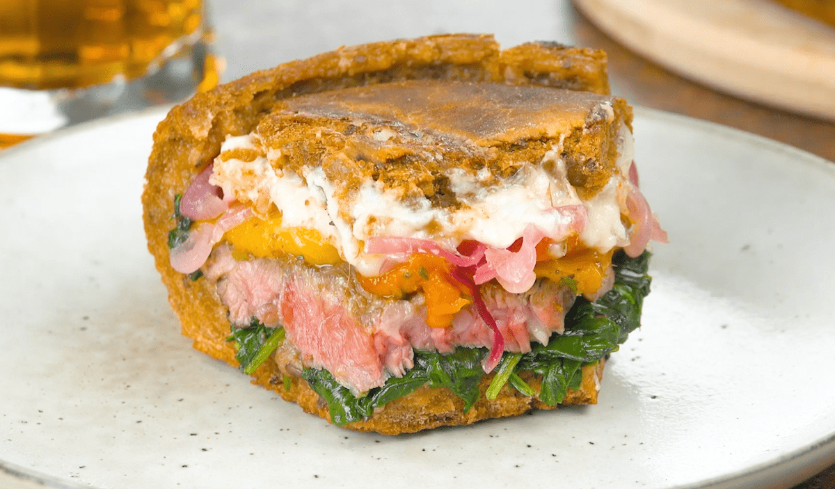 4. Gefülltes Brot mit Rindersteak und Babyspinat