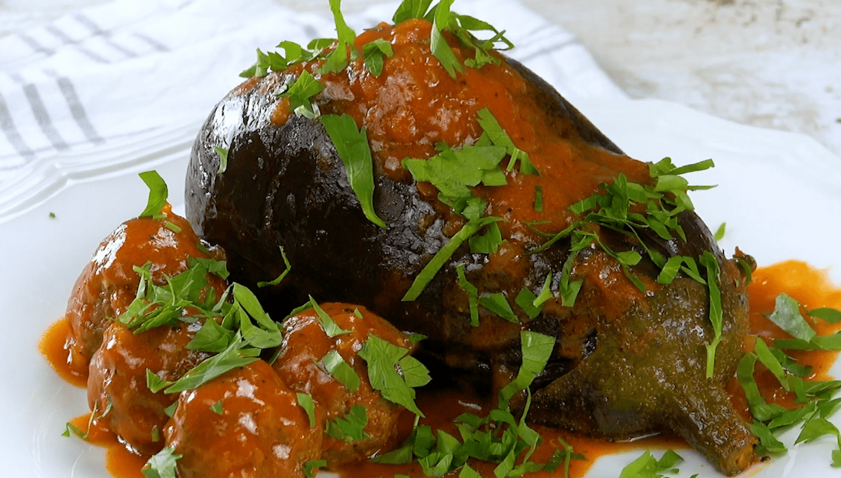 6. Gefüllte Aubergine mit Hackfleisch und Tomatensoße