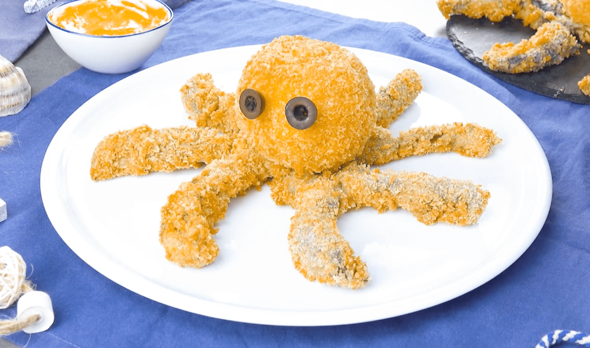 Oktopus ist sicher nicht jedermanns Geschmack. Aber was sagst du zu einem frittierten Oktopus, der eigentlich gar kein Oktopus ist? Für dieses Kraken-Gericht musste kein 8-armiger Meeresbewohner sein Leben lassen! Wir haben einfach einen Oktopus aus einer Aubergine und einer Zwiebel zusammengebaut. Dazu gibt es eine selbstgemachte Mayonnaise. Eine wirklich tolle Idee, vor allem für die Kleinen am Tisch, denn dieser Oktopus sieht einfach zu niedlich aus. Hier findest du das Rezept für die frittierte Aubergine.