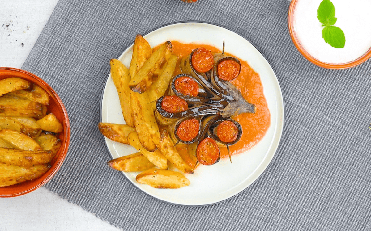 Rezepte für gefüllte Auberginen gibt es wie Sand am Meer. Am bekanntesten ist vermutlich die Variante mit Hackfleisch und Tomatensoße. So auch im folgenden Rezept! Aber unsere gefüllte Aubergine sieht am Ende aus wie eine hübsche Blume. Mit ein wenig Hilfe von Zahnstochern kann man die Aubergine optisch besonders kreativ in Szene setzen. Hier findest du das Rezept für die gefüllte Aubergine.