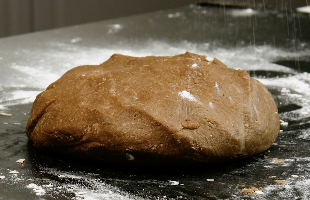 6.2 Zupfe nun den Teig in kleine Stückchen und verteile diese wild durcheinander auf einer bemehlten Arbeitsfläche.