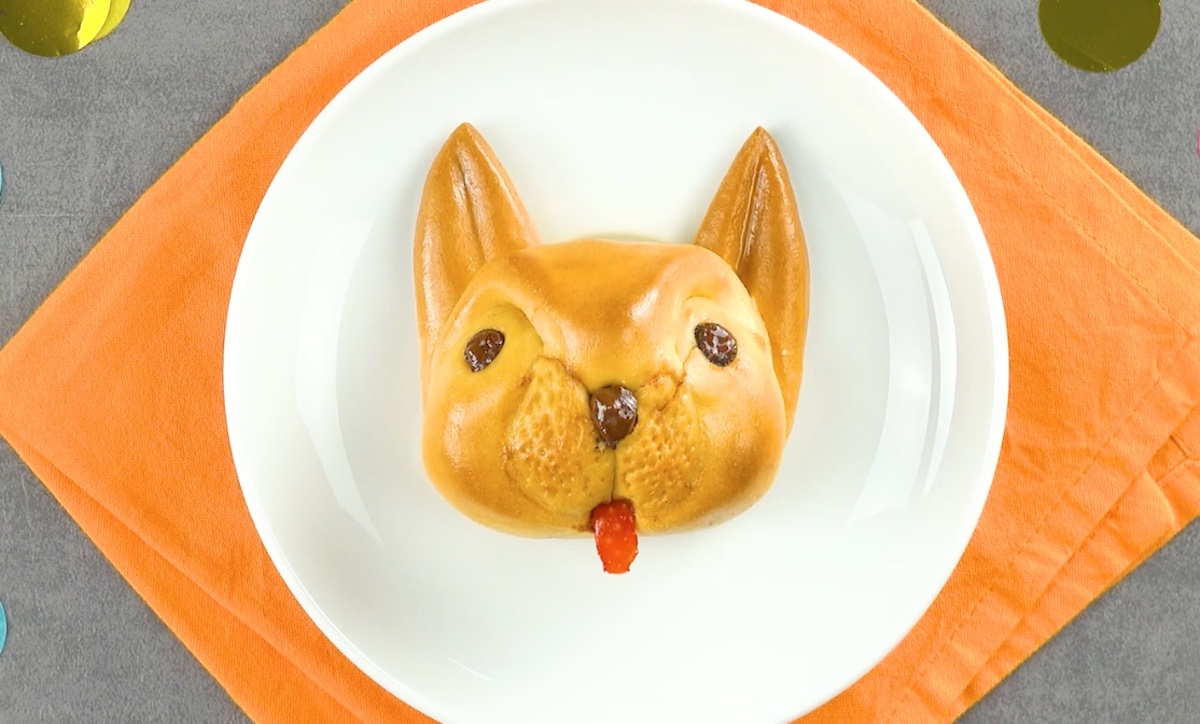 5.6 Lass das süße Hundegesicht 30 Minuten ruhen, überziehe es dann mit Eistreiche und backe es anschließend für 20 Minuten bei 180 °C Ober-/Unterhitze.