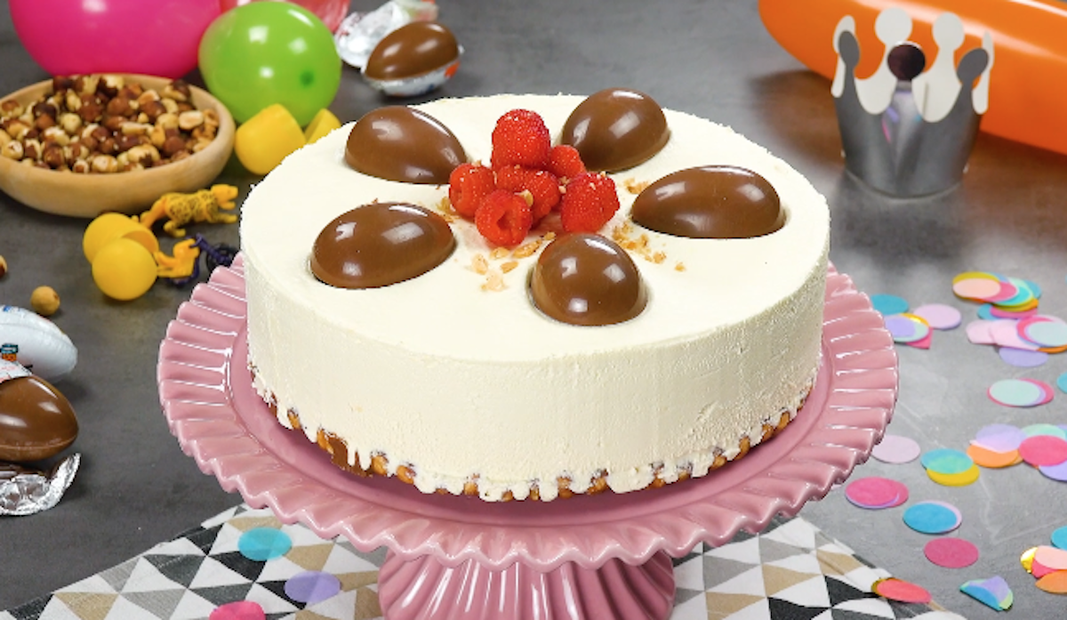 Die „kinder“-Produkte von Ferrero erfreuen sich nicht nur hierzulande größter Beliebtheit. Ob Klein oder Groß, die „kinder Schokolade“ schmeckt eigentlich jeder Naschkatze. Auch wir lieben jegliche Kuchen- oder Dessert-Rezepte mit „kinder“-Riegel & Co. Folgende Ü-Ei-Torte ist aber etwas ganz Besonderes, da sie gleich zwei süße Überraschungen in sich versteckt. Erst beim Anschneiden entfaltet sich die volle Pracht. Hier findest das Rezept für den Ü-Ei-Kuchen mit Frischkäsecreme.