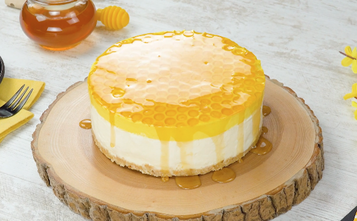 Dieser Käsekuchen überzeugt vor allem durch seinen besonderen Look. Optisch einer Bienenwabe nachempfunden, trumpft er auch geschmacklich mit einer feinen Honignote auf. Um diesen coolen Look so hinzubekommen, hilft dir übrigens ein Stück Knallfolie. Hier findest du das Rezept für den leckeren Käsekuchen mit Honig.