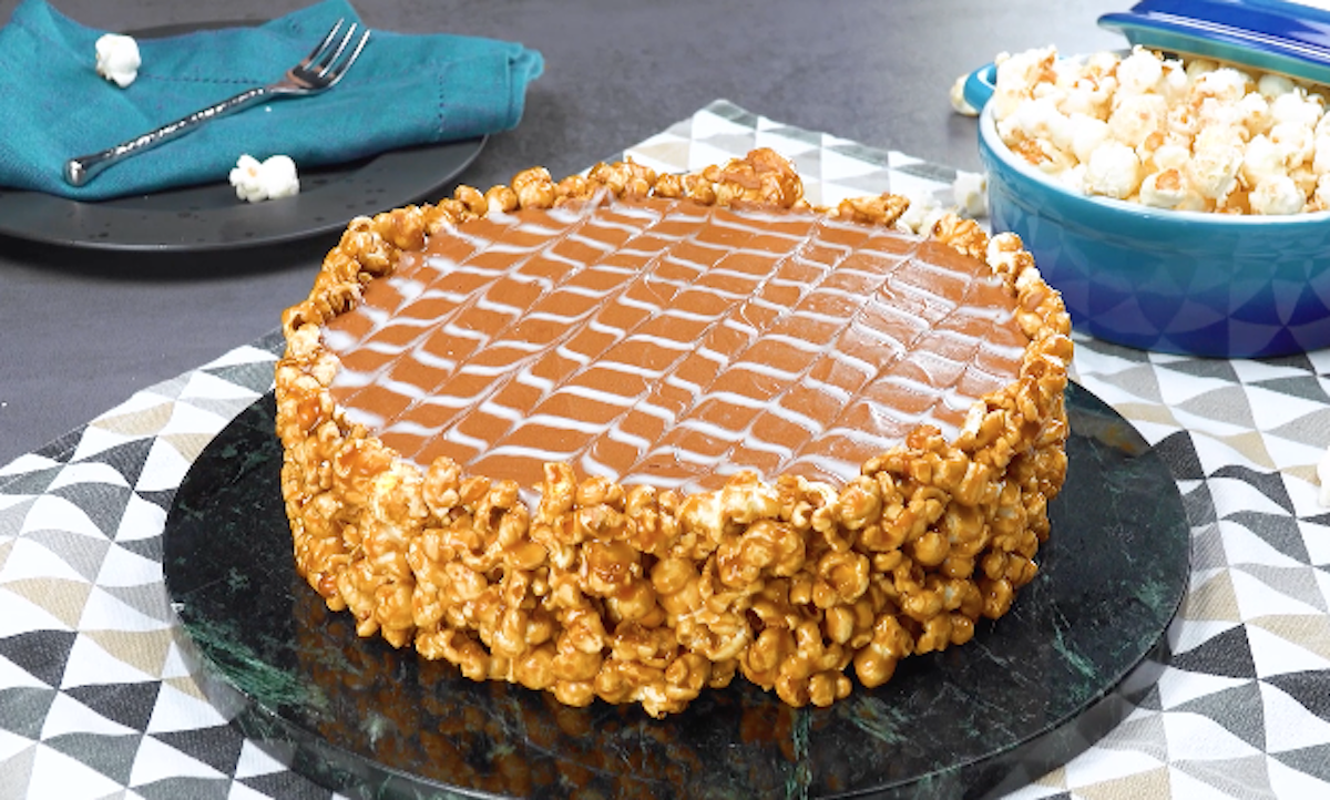 Wenn du zu denjenigen gehörst, für die jeder Kinobesuch einen XXL-Becher Popcorn impliziert, dann solltest du folgendes Rezept mit Aufmerksamkeit lesen. Dieser Kuchen ist ein süßer Genuss aus Popcorn mit Karamell und einer äußerst schmackhaften Schokomousse. Verziert wird er noch mit Zuckerguss – und fertig ist ein tolles Dessert mit selbstgemachtem Popcorn. Hier findest du das Rezept für den Popcorn-Kuchen.