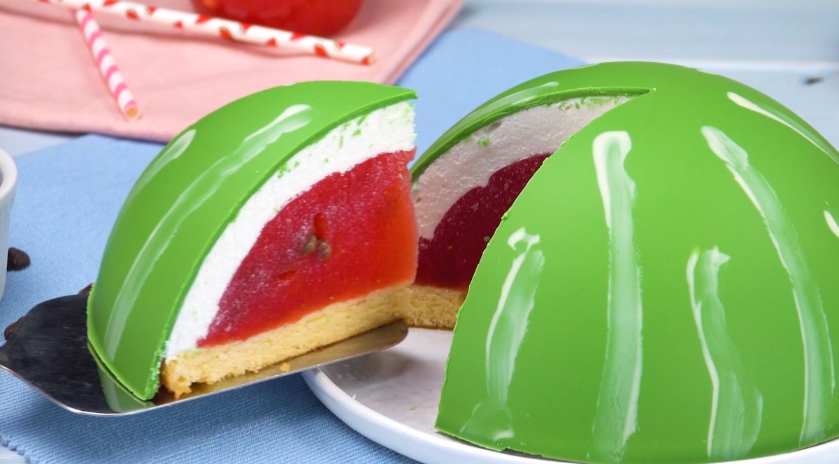Ein köstlicher Kuchen, der aussieht wie eine Wassermelone? Wenn das dein bisheriger Kuchentraum war, kannst du ihn als erfüllt abhaken, denn dieses Rezept vereint Kuchen und Wassermelone nicht nur geschmacklich, sondern auch optisch.