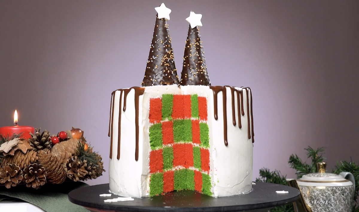 „In der Weihnachtsbäckerei gibt’s so manche Leckerei“, so sagt bzw. singt man. Wenn du dich mit normalem Plätzchenbacken in der Weihnachtszeit nicht zufriedengibst, solltest du folgendes Rezept unbedingt ausprobieren. Dieser Weihnachtskuchen ist für manche Hobby-Bäcker vielleicht eine Herausforderung, allerdings wird man am Ende gleich doppelt belohnt. Das Prachtstück schmeckt nicht nur wahnsinnig gut, es ist auch optisch ein Kuchen der Extraklasse. Hier findest du das Rezept für den bunten Weihnachtskuchen.