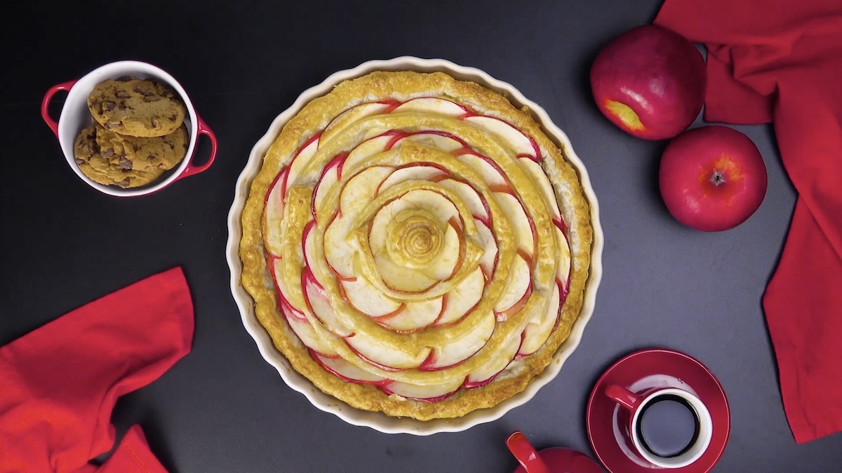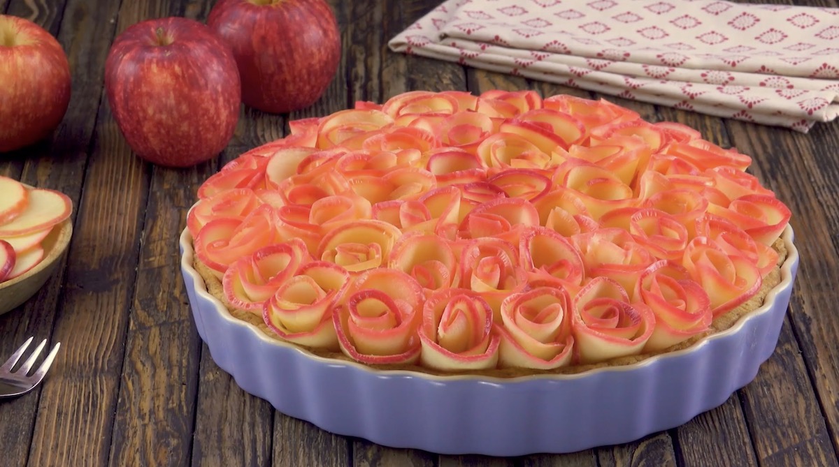Wir haben uns gedacht: Äpfel roh aus der Hand zu essen, ist doch langweilig, denn aus dem ganzjährig erhältlichen Obst lassen sich allerhand Leckereien zaubern – hier kommen die 10 besten Apfelrezepte: von Kuchen bis Desserts. 1.) Apfel-Rosen-Tarte Wenn es um Kuchen, Torten und Gebäck geht, entscheidet nicht nur der Geschmack, sondern auch die Optik. Die volle Palette von beidem bietet dir diese Apfel-Rosen-Tarte, die vom Teig bis zur Füllung zu 100 Prozent selbstgemacht ist. Für das atemberaubend schöne Ergebnis wird sich jeder Schritt lohnen!