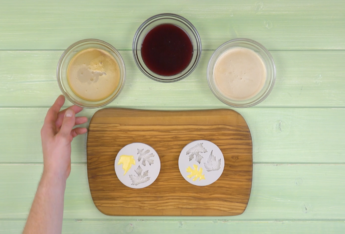 Tipp: Du brauchst später mehrere Blätter, entweder benutzt du also mehrere Silikonformen auf einmal oder du stellst die Blätter nacheinander her.