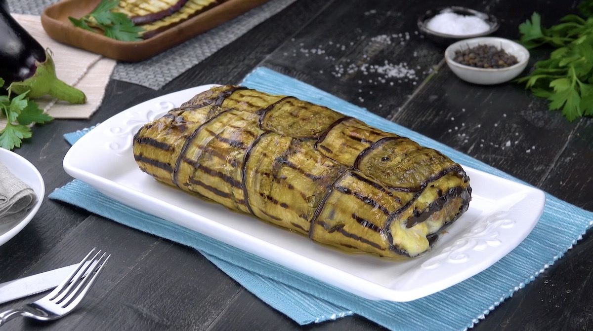 Auberginenrolle mit Hackfleisch und Käse Wusstest du, dass die Aubergine auch Eierfrucht genannt wird? Das dunkelviolette Nachtschattengewächs ist vor allem in der gesunden Küche sehr beliebt. Die Aubergine hat superwenig Kalorien und ist wegen ihres nur wenig ausgeprägten Eigengeschmacks hervorragend mit anderen Zutaten kombinierbar. Das beste Beispiel hierfür ist diese köstliche Auberginenrolle.
