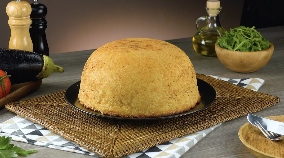 Herzhafter Auberginenkuchen mit Risotto und Käse Wenn du auf Risotto und Auberginen stehst, solltest du dieses Rezept unbedingt ausprobieren. Das Risotto verwandelt sich in einen herzhaften Kuchen mit mehreren köstlichen Schichten. Käse, Tomatensoße und gebackene Auberginenscheiben machen das Mahl zu einem richtigen Geschmackserlebnis.
