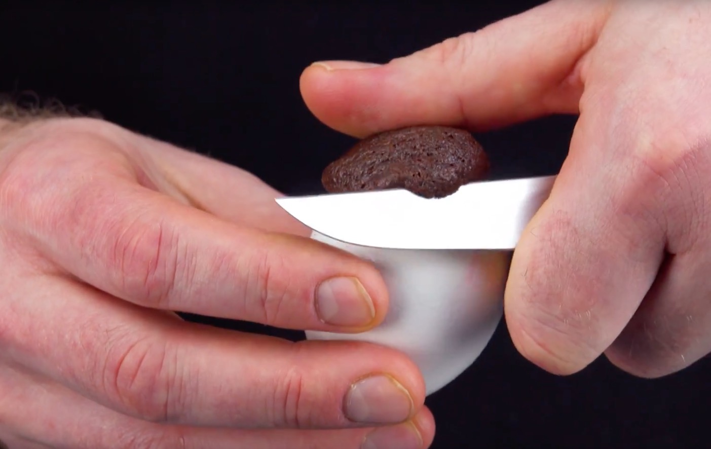 Kratze den überschüssigen Teig außen an der Schale vorsichtig mit einem Messer ab und reinige sie evtl. mit einem feuchten Küchentuch nach.