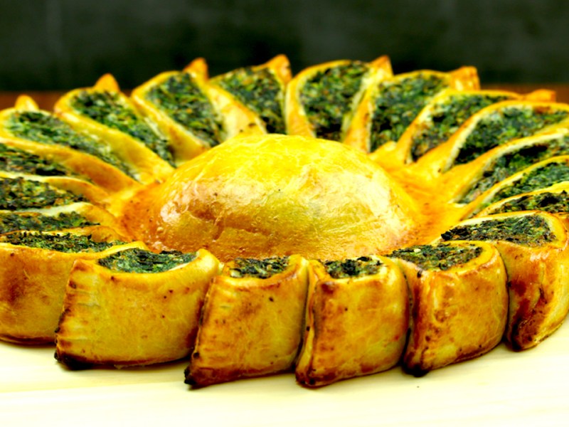 Vegetarische Sonne aus Spinat, Ricotta und Parmesan