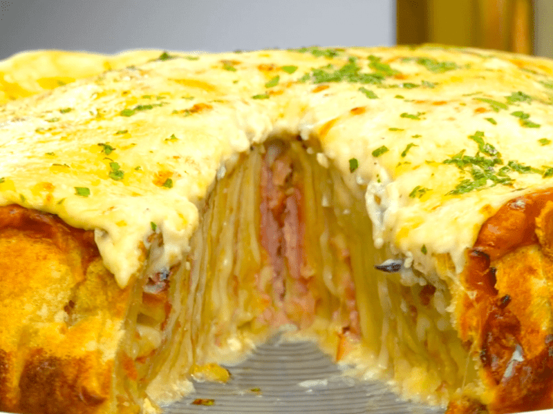 Mit Hackfleisch gefüllte Kartoffelpuffer als Kuchen