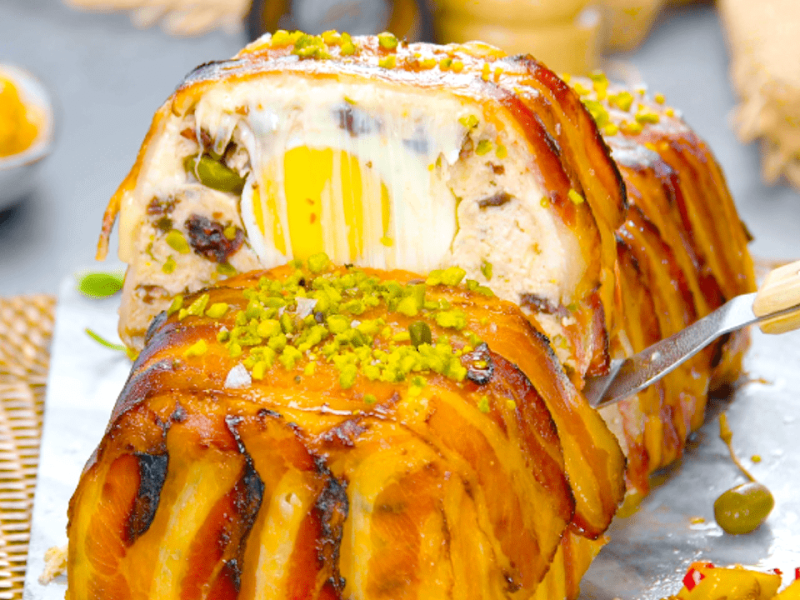 Hackbraten mit Ei im knusprigen Speckmantel