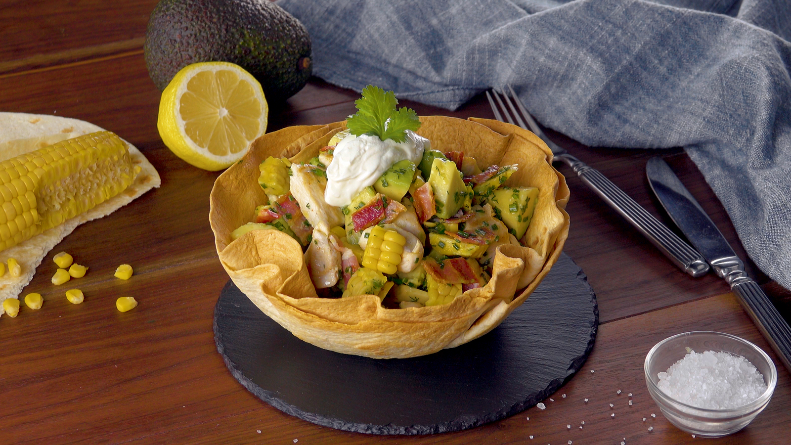 10.) Avocado-Hähnchen-Salat in Tortilla-Schüssel