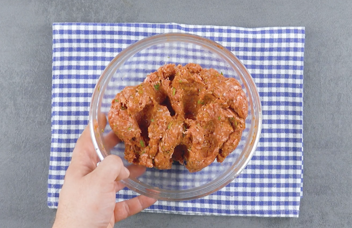 1. Vermische Hackfleisch mit Salz, Pfeffer, Ketchup, Petersilie, Knoblauchpulver und Paprikapulver und stelle das Ganze für später in den Kühlschrank.