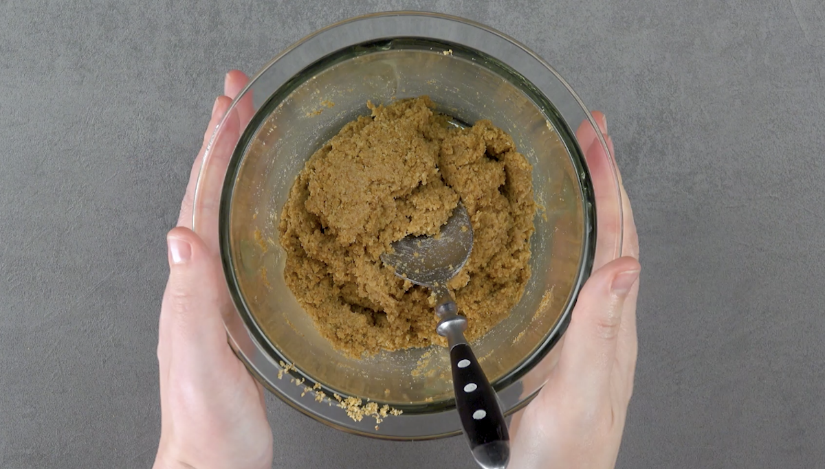 So geht es: 1.) Gib die Kekse in einen Multizerkleinerer und mixe sie, bis sie krümelig sind. Füge Milch hinzu und verrühre alles, bis eine klebrige Masse entsteht.