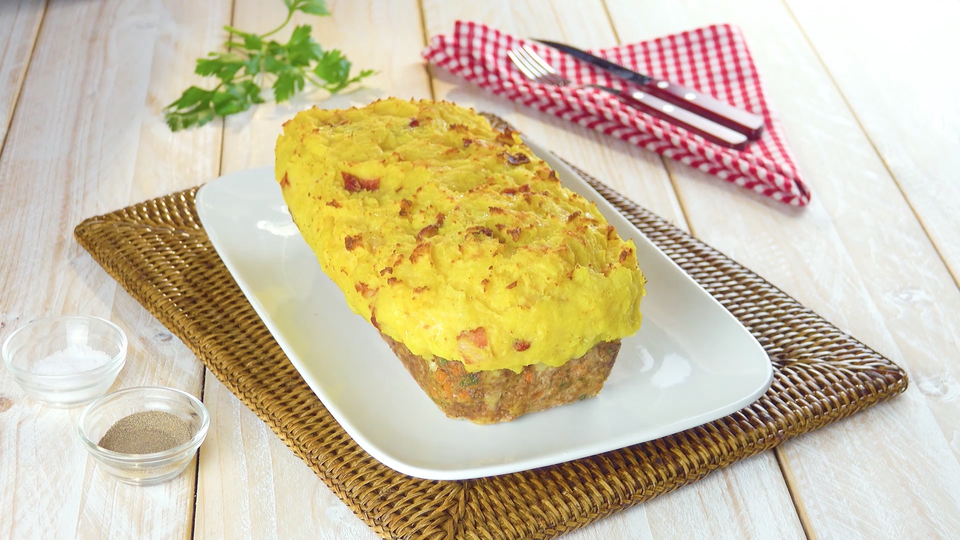 Ein Glas Milch, ein Brötchen, etwas Hackfleisch und Kartoffelpüree – das hört sich soweit nach einem netten kleinen Mittagessen an. Doch im nun folgenden Rezept werden diese Zutaten nicht einzeln serviert, sondern zu einem großen Kartoffel-Käse-Hackbraten vereint.