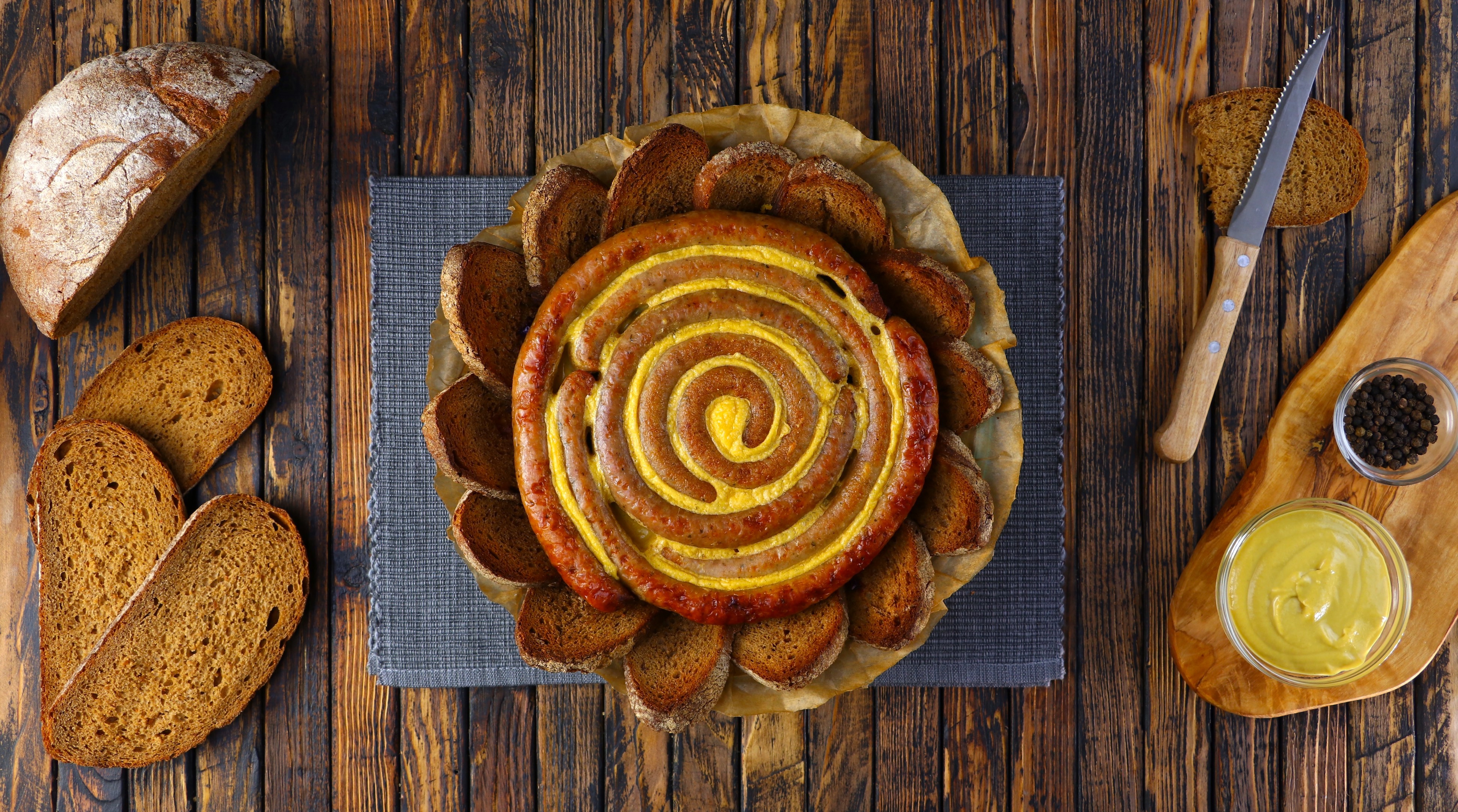 Man kann sagen, was man will, aber am besten schmeckt eine Bratwurst, wenn sie vom Grill kommt. Unerreicht ist das rauchige Aroma, das sie dabei bekommt, und wunderschön das gleichmäßige Muster des Grillrosts. In einem schmeichelhaften Brötchengewand samt zarter Ketchup- und Senfzierde wird das Glück perfekt. Es braucht schon einiges, um dieses Gedankenkino zu überbieten. Aber versuchen wir es doch einfach mal mit diesem deftigen Rezeptvorschlag.
