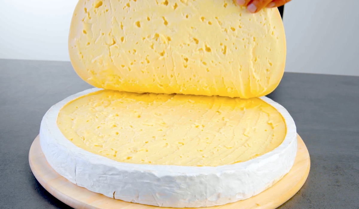 2. Schneide vom Brie die obere Schicht, den späteren „Deckel“, ab und lege diesen zur Seite.