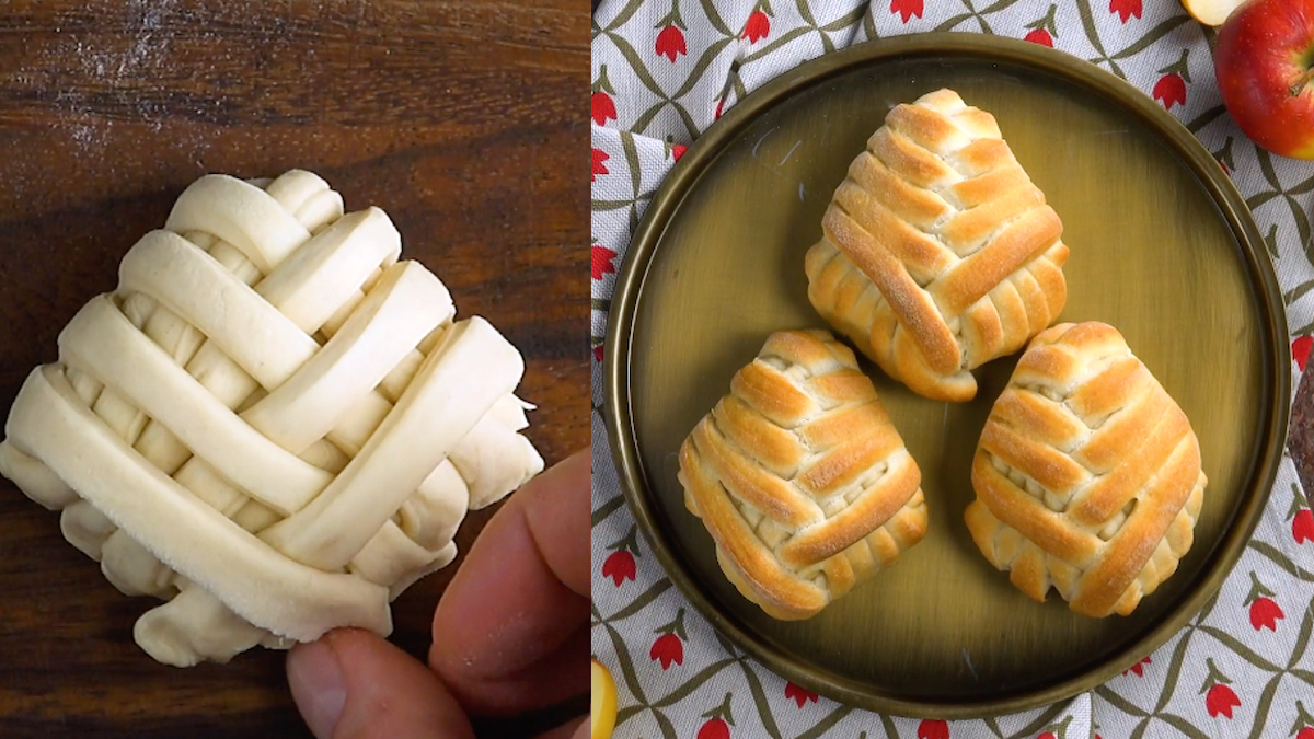 7.3) Klappe die obere Hälfte des Teiges auf die Äpfel.
