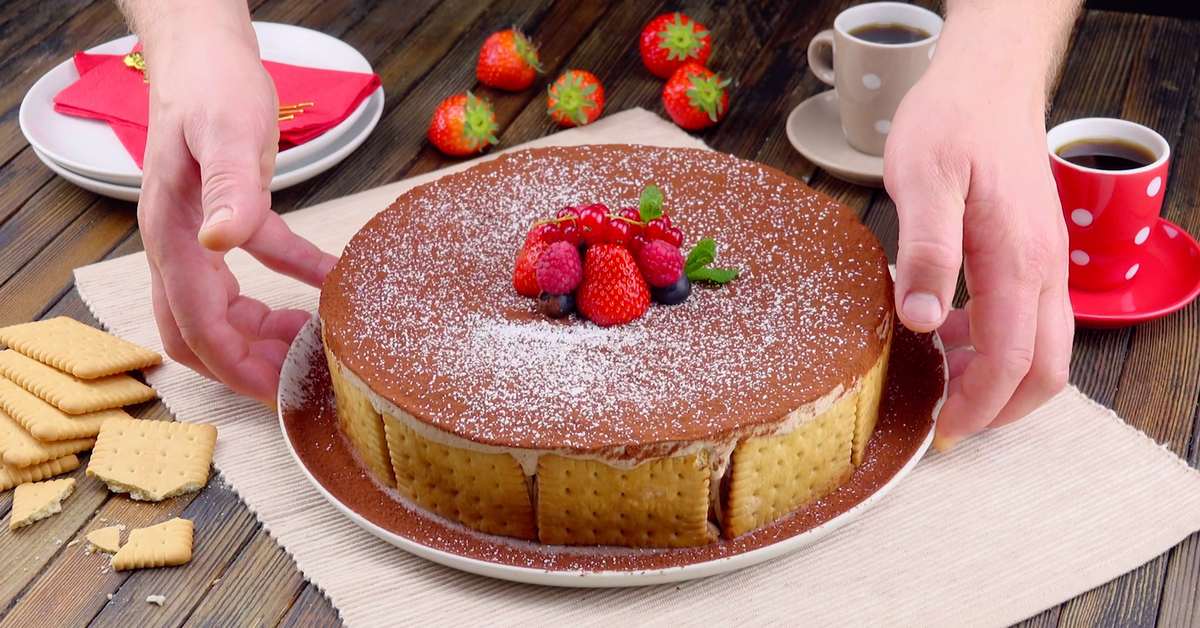 Schicht für Schicht ein Gedicht: Diese Kekstorte ist dank der fruchtigen Dekoration eine wahre Augenweide. Auch im Inneren ist sie ein herrlicher Blickfang, denn Erdbeeren, Schokolade und Kekse wechseln einander in perfekter Harmonie ab und lassen beim Verzehr alle Geschmacksknospen erblühen.