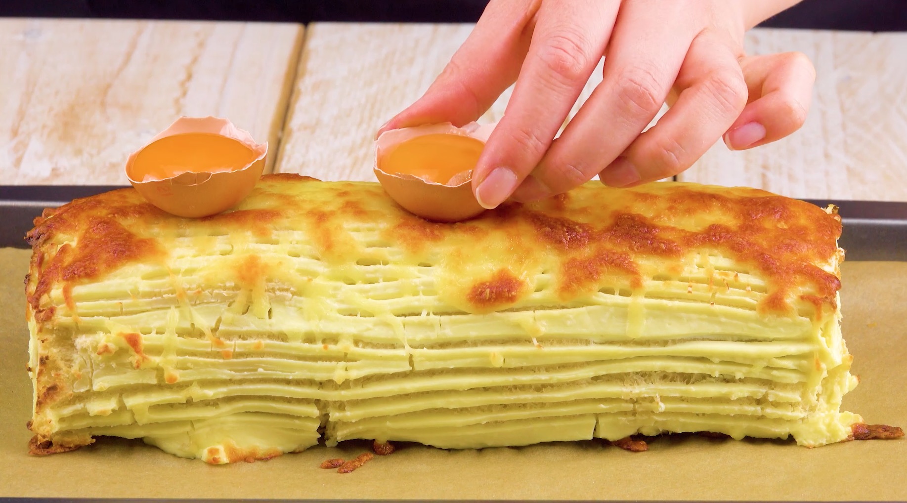 5.) Nimm das Gericht aus dem Ofen und setze nun die Eigelbe in einer Eierschalenhälfte auf die Rolle. Drücke mit den Schalen jeweils leicht in die Rolle, sodass kleine Kuhlen entstehen. Backe alles zusammen weitere 5 Minuten bei derselben Temperatur.