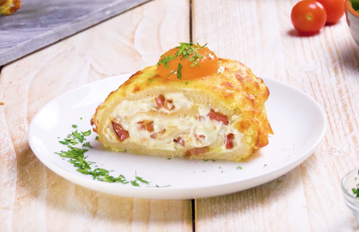Für Fans der originalen Carbonara-Version ist dieses Gericht der perfekte Ersatz, wenn sie Lust auf den Klassiker, aber keine Nudeln zu Hause haben. Außerdem macht die köstliche Roulade durch die Eigelb-Garnierung auch optisch ordentlich was her.