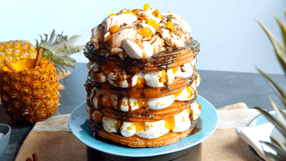 Mit Churros haben wir bereits intensiv experimentiert. Ob als Tasse mit Schokosauce oder am Stiel – dieses leckere Gebäck hat es uns einfach angetan. Heute bereiten wir Churros aber mal eine Nummer größer zu und stellen dir unsere herrlich fruchtige und imposante Churros-Torte mit Limettencreme und Ananas vor. Eine kulinarische Offenbarung!
