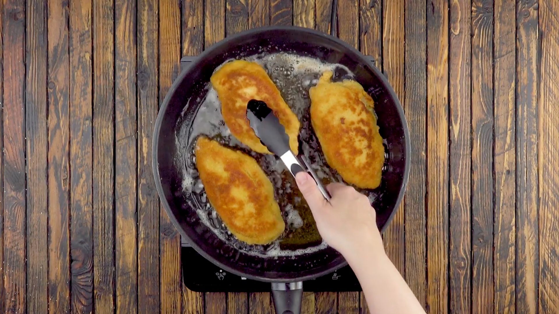 3.) Brate die Hühnerbrüste in heißem Öl beidseitig goldbraun an.