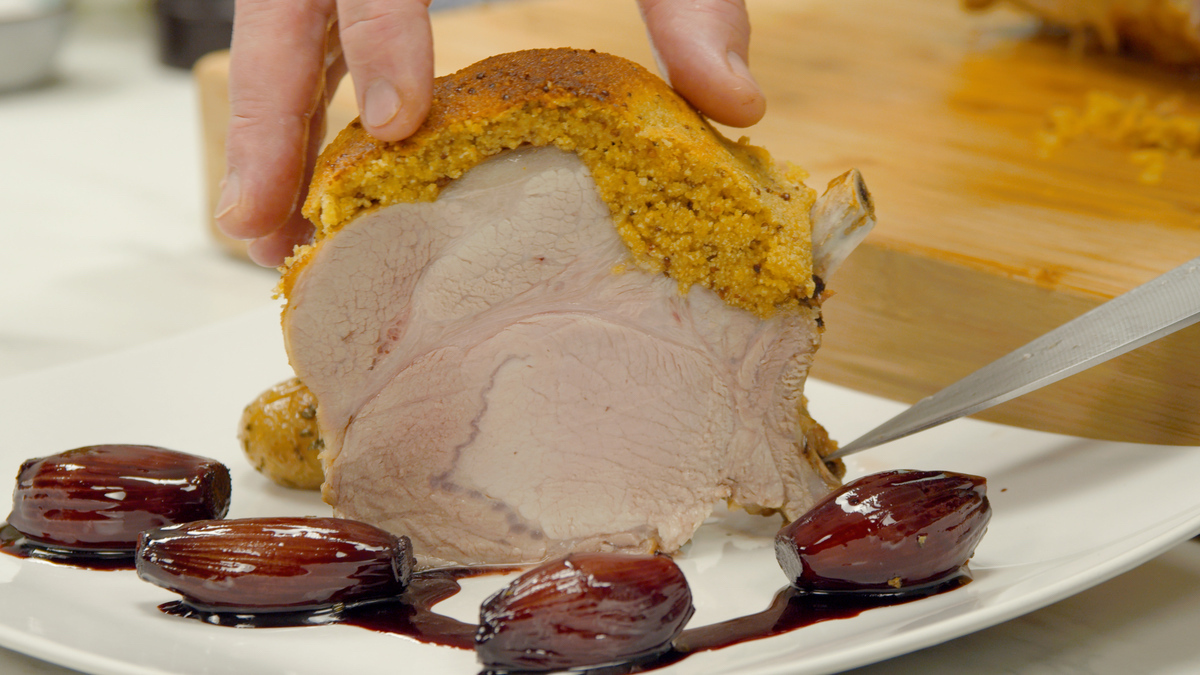 Der perfekte Schweinebraten mit Kruste und Rotweinschalotten