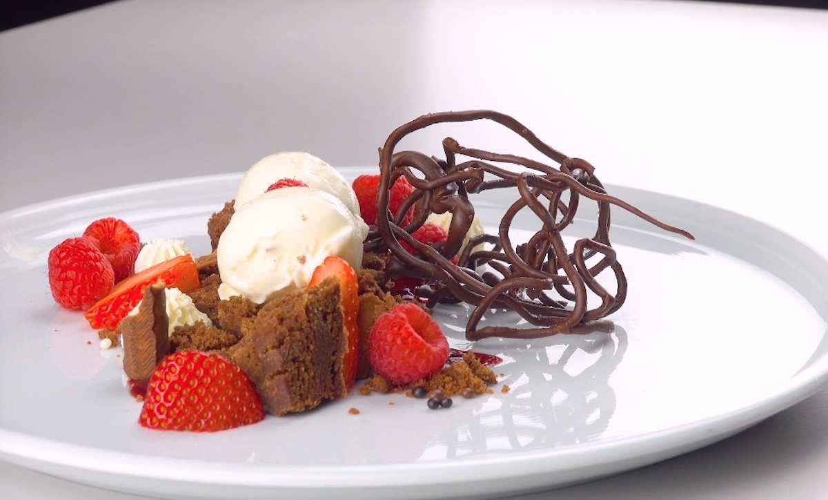 Habt ihr schon einmal etwas vom Dessert-Magen gehört? Der Dessert-Magen ist ein sekundäres Organ, das erst dann aktiv wird, wenn das primäre Organ – der Magen – zwar voll ist, man aber unbedingt noch ein Eis, ein Stück Kuchen oder Torte verschlingen möchte. Spaß beiseite: Der Mensch hat natürlich nur einen Magen. Aber jeder von uns kennt bestimmt den Ausdruck „Nachtisch geht immer“. Und damit es genug Abwechslung auf euren Tellern gibt, solltet ihr euch folgende sechs Dekorations-Ideen mit geschmolzener Schokolade anschauen. Dafür brauchst du: