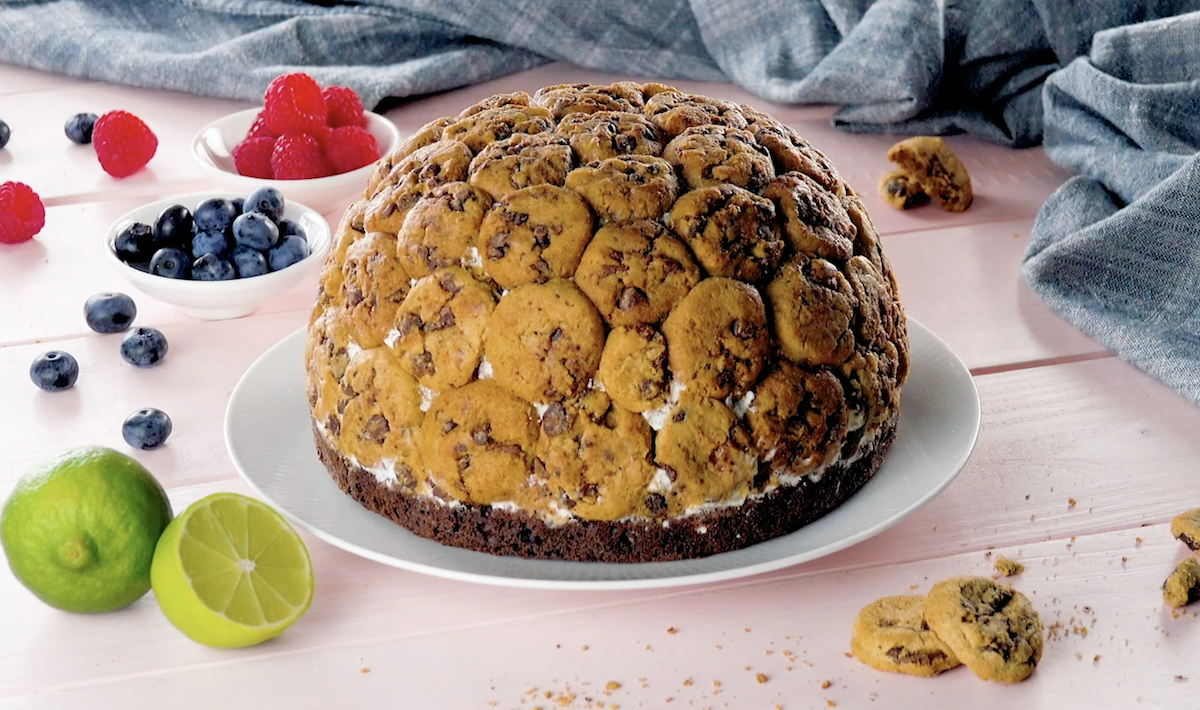 Wann gibt es das schon mal? Ein süßes Rezept, von dem niemand genau sagen kann, ob es sich um einen sommerlichen Kuppelkuchen, eine Eistorte, ein sogenanntes Crumble (etwa „Kekskrümel-Dessert“) oder einfach einen cremigen Nachtisch in Halbkugelform handelt. Aber letzten Endes tut die genaue Definition eigentlich nichts zur Sache. Was zählt, ist der Inhalt. Und wer kann Keksen, Frischkäse-Sahne-Creme mit Schokolade und Beeren schon widerstehen? Hier findest du das Rezept für die leckere Cookie-Kuppel.