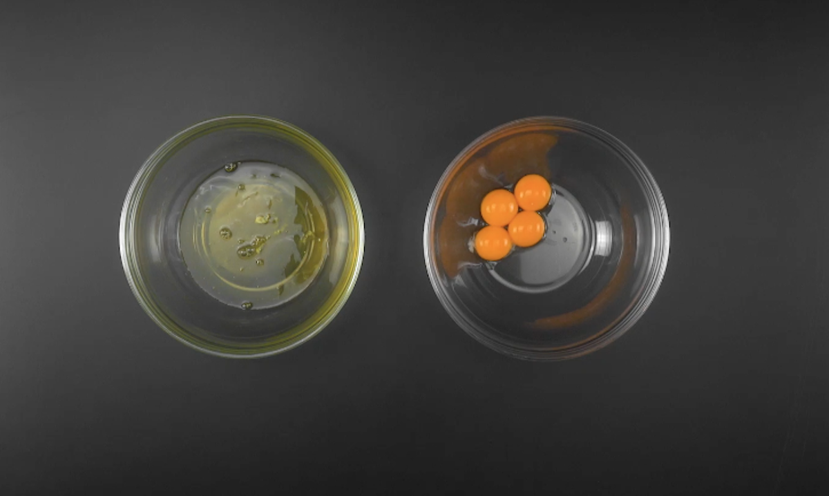 So geht es: 1. Trenne die Eier und gib Eiweiß und Eigelb in je eine separate Schüssel.